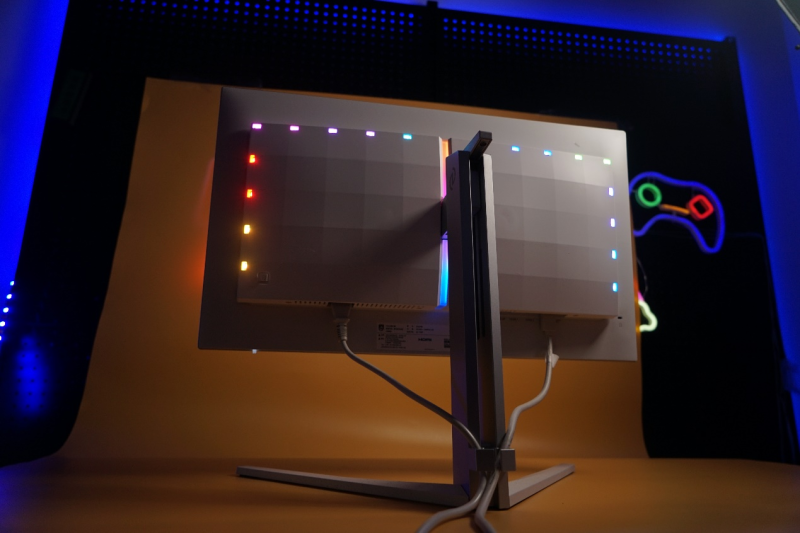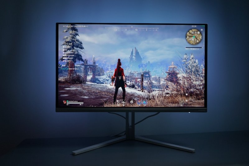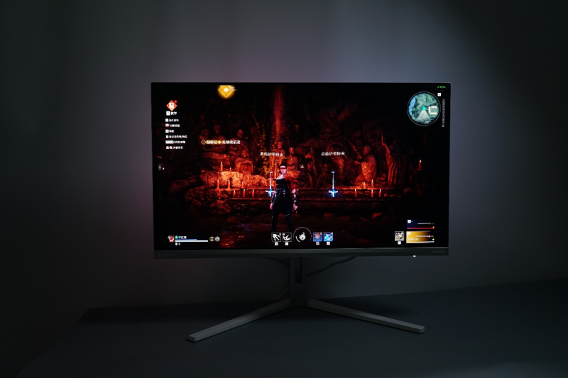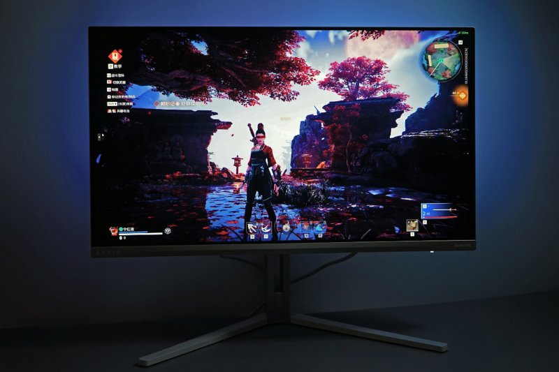 然而,参数只是基石,EVNIA弈威的野心远不止于此。它真正的灵魂,在于其背部那套独家专利的环景光“AI光影同步”Ambiglow技术。这绝非简单的RGB灯带,而是一套拥有独立AI芯片的硬件级智能系统。它能实时分析屏幕画面,如同一位理解场景氛围的伙伴:当你在《地平线》的草丛中潜行时,静谧的蓝绿光影便会悄然弥漫。这种光与画的同步,无需任何软件辅助,不占用系统资源,却将游戏的沉浸感从二维屏幕,无缝延展至你身处的三维物理空间。可以说,它让你从“看”游戏,真正进阶到了“感知”游戏。