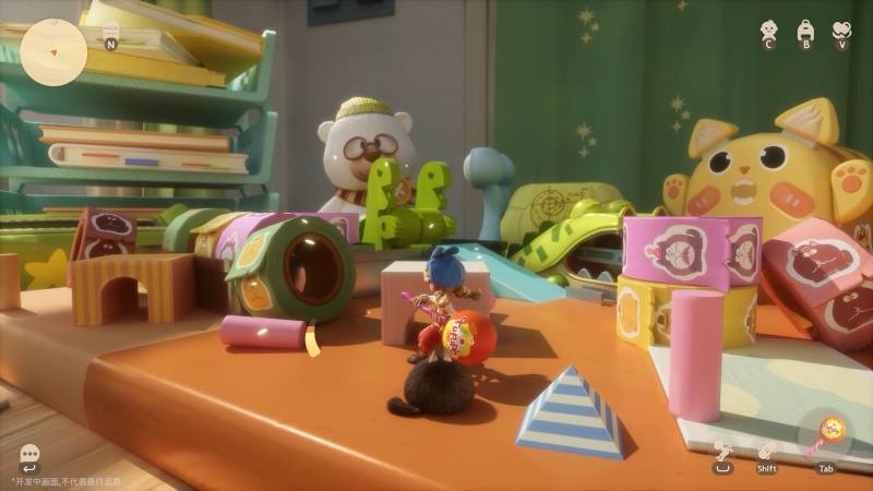 在这个世界里,我们将成为“心想家”,使用神奇的缩小枪,收集日常物件并建造独一无二的梦想家园。耳机线变成荡向阳光的秋千,眼镜盒改造成铺着绒布的沙发,牛奶盒堆叠出带着天窗的小屋,就连闹钟都成了可以蜷卧的摇椅。这种将普通物品“转化”为宝藏的过程,本身就是一种极具创意的游戏体验。