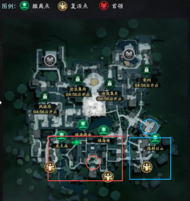 只要大家出生在红框区域内,那么我们的目标只有一个,位于地图下方中心的大院落。