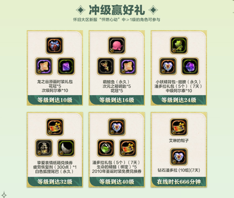 在新服冒险时,角色不仅可享亿点点经验加成,当角色提升至指定等级或完成冒险任务时,还有超多珍贵好礼,等待大家来免费抱走!永久原画时装、萌鲸鱼头饰、小妖精背包、挚爱表情纸箱兑换券、白色狐狸尾巴、2010圣诞时装免费兑换券,全部免!费!送!冒险旅程中大有用处的花冠、钻石潘多拉、疲劳恢复剂以及各类实用材料等等,也会免费送给大家哦!