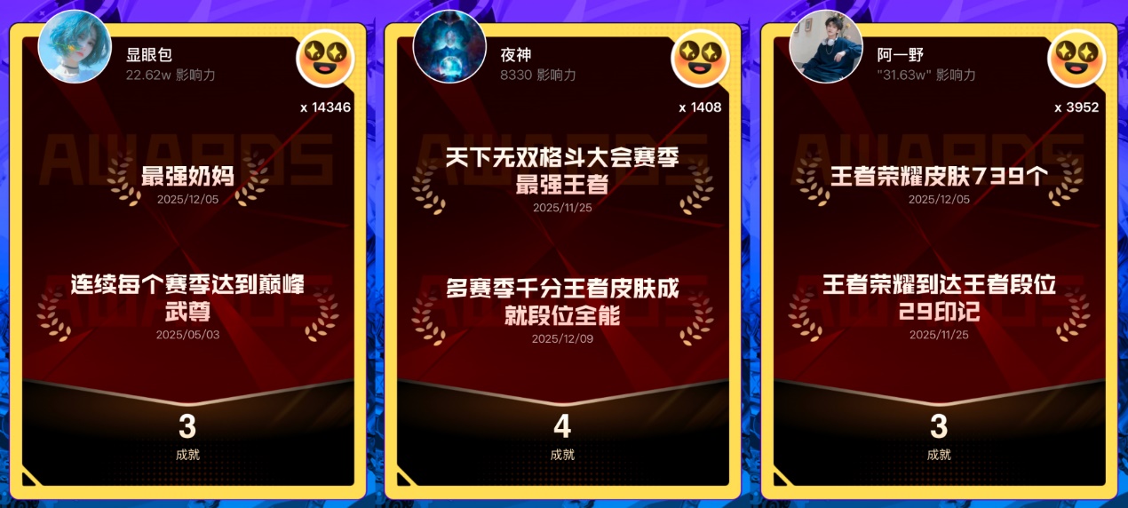 入围的候选者有英雄联盟手游国服第一联盟「神话俱乐部」、有高达19个俱乐部成就的「赋生俱乐部」,也有常年武尊且胜率保持在60%以上的游戏家「显眼包」、金铲铲全服成就排名第一的全能大神游戏家「夜神」,等等。