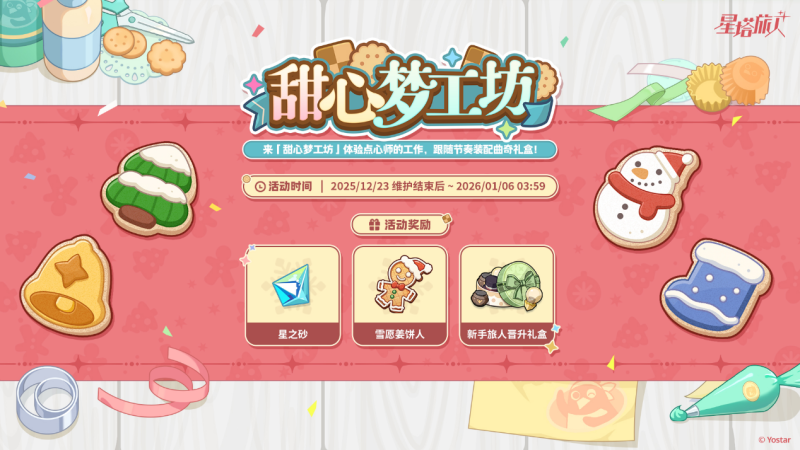 活动期间,旅人招募卡池「圣夜送礼大作战」于12月23日限时开启,全新限定5星旅人【菈露(圣夜)】获得限时招募概率提升。成为圣夜使者的菈露正在进行雪愿节特派,平日里爱摸鱼偷懒的少女竟然展现出了认真工作的一面,或许雪愿节对她来说有着非同寻常的意义。在战斗中,菈露(圣夜)是均衡定位的火属性角色,带领玩具士兵协同作战,开启绝招后她还会直接变身为玩具「菈露爵士」,并拥有全新的技能形态。