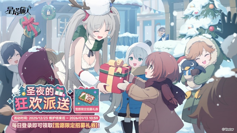 为了庆祝盛大的「雪愿节」和即将到来的元旦新年,《星塔旅人》还为魔王大人准备了「圣夜的狂欢派送」、「雪愿节的祝福礼」及「元旦启程 · 焕新之章」三重签到纪念活动,献上包括【雪愿限定招募礼券*20】、青空礼券、豪华礼物自选盒等特别礼物,一起欢度冬日佳节~