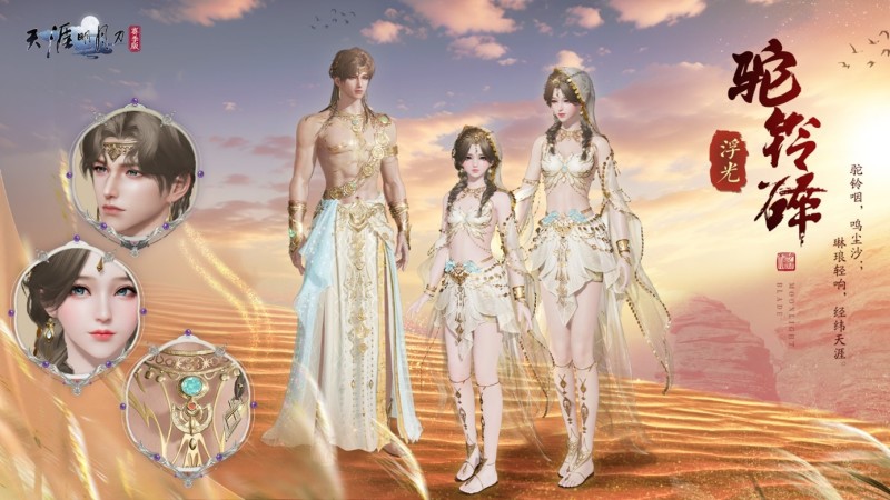 全新大漠主题外观【浮光·驼铃碎】将在2月6日随新赛季登场,商城直售价1580月灵石,收藏外观同步解锁耳饰【听情·驼铃碎】,邀少侠一起来化身潇洒大漠旅人,赴一场西域古道的温柔邂逅。