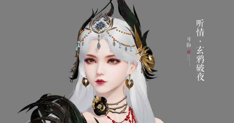 4月9日,全新外观【玄鸦破夜】将随新一期【霓光奇珍】活动来到江湖,收藏外观解锁耳饰【听情·玄鸦破夜】与动作【羽寂】,同步可得眼罩面饰【幽影帘】。