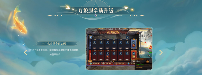 4月10日,万象4服:青丘月满与万象5服:句芒司春上线后,化身圣令再加码,10个化身圣令中,增加每10级额外万象币的获取,加量不加价,助力天命者变强!