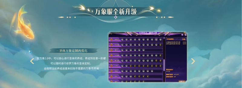 同时,圣体万象定制再行优化。在万象2.0中,养成到任意一阶,都可以随时进行修罗万象的圣体定制,并且系统会按照当前养成进度来扣除不需要的万象币开销。天命者可以放心进行圣体的养成,不再为卡进度而忧心。
