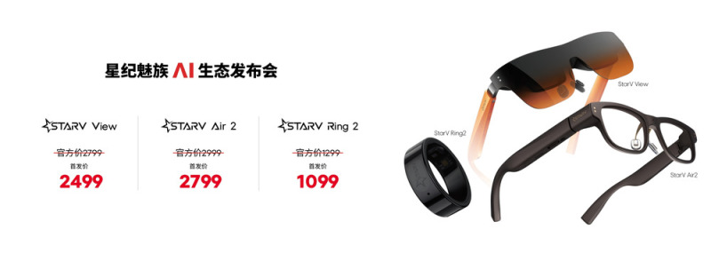 作为星纪魅族旗下的全新智能终端品牌,StarV 在星纪魅族 AI 生态发布会上正式推出三款新品,包括 AR 智能眼镜StarV Air2、StarV View 以及智能指环 StarV Ring2,为用户带来全新的智能穿戴体验。