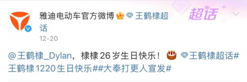 12月20日王鹤棣生日之际,雅迪电动车官方微博精准卡点12点20分送上生日祝福,这一操作瞬间在王鹤棣的粉丝群体中引发了强烈反响,众多 “兄棣伙” 纷纷参与互动,相关话题热度迅速攀升。雅迪官博不仅送上温馨祝福,还带上了 #大奉打更人宣发# 话题,并发布官宣海报,正式坐实了与即将上映的《大奉打更人》的合作消息。这部由王鹤棣、田曦薇主演的电视剧,融合多种热门元素,自开拍以来便备受期待,在腾讯视频的预约量已突破422万+,微博、抖音相关话题热度超百亿,被视为2025开年超级爆款。雅迪在此时与王鹤棣的《大奉打更人》携手合作,无疑是精准地捕捉到了这部剧的巨大流量潜力和王鹤棣的超高人气。