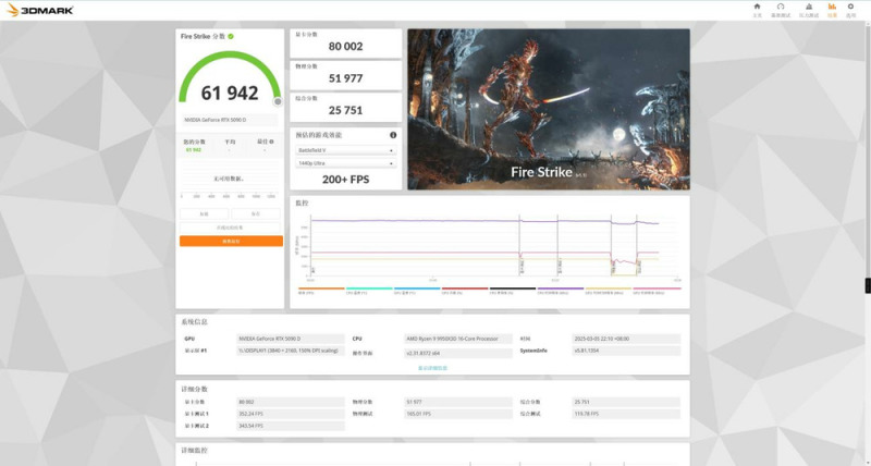 锐龙9 9950X3D的Fire Strike的物理分数为51977分。