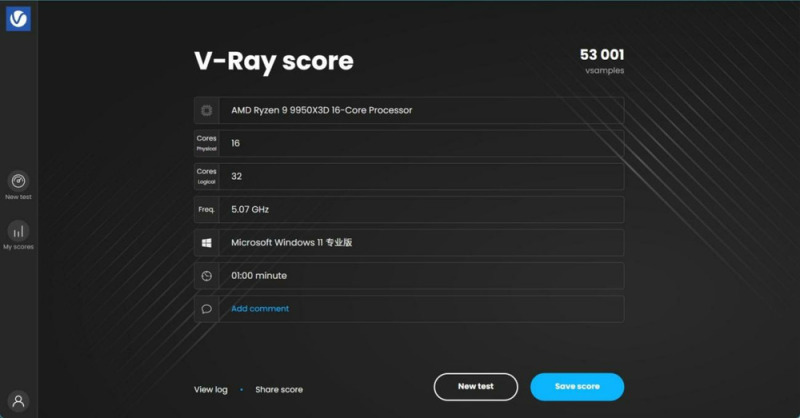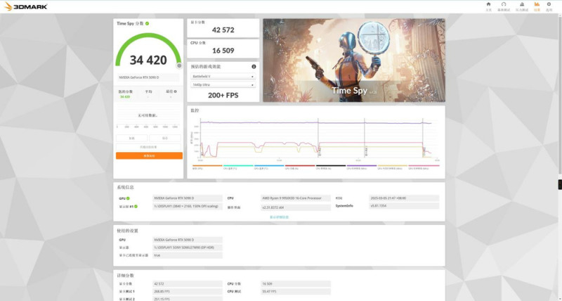 锐龙9 9950X3D的Time Spy分数CPU部分为16509分