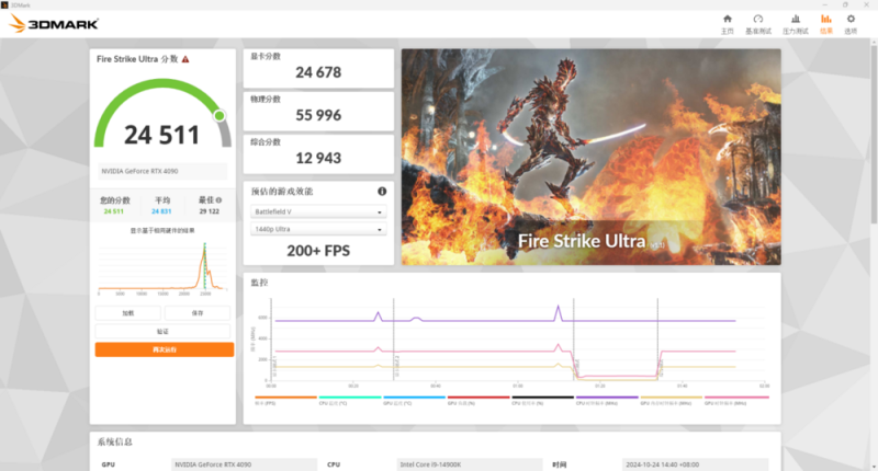 i9-14900K的Fire Strike Ultra的物理分数55996分。