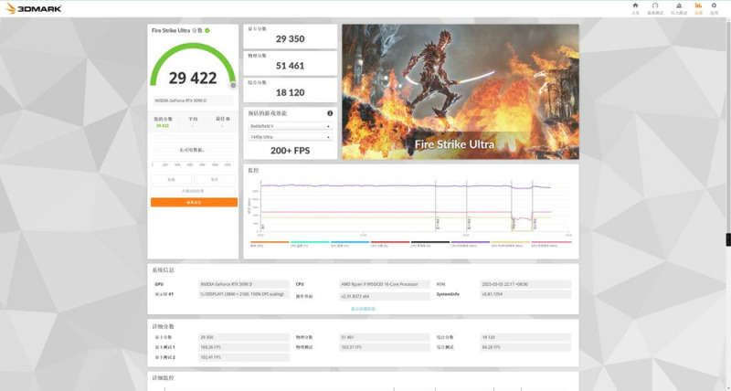锐龙9 9950X3D的Fire Strike Extreme物理分数51455分。