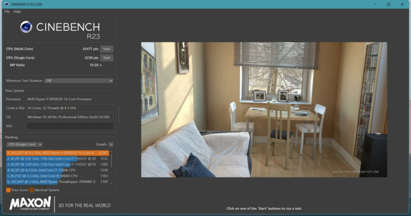 锐龙9 9950X3D的Time Spy Extreme的CPU部分为14263分。