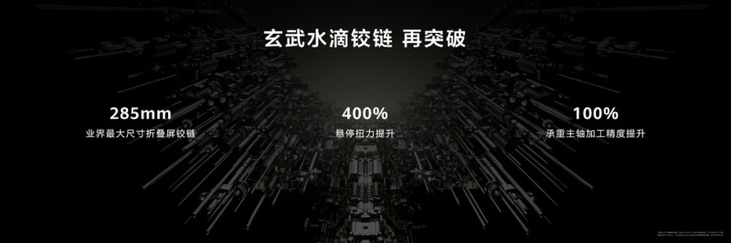 HUAWEI MateBook Fold 非凡大师为确保整机轻薄与坚固性,选择了难度更大的水滴型转轴技术路径,并通过一根主轴和三段式转轴的设计,带来目前业内最大尺寸、最薄且技术复杂的折叠转轴。