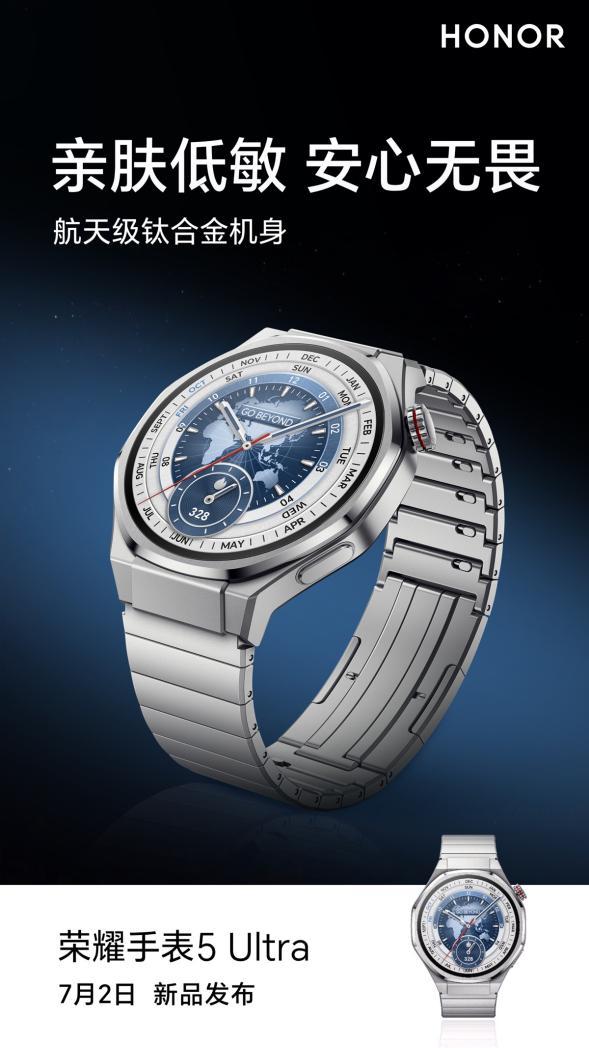 荣耀手表5 Ultra从6月25日起,已开启全渠道预售,消费者可通过京东、天猫官方旗舰店、抖音荣耀旗舰店、荣耀商城及线下体验店抢先预订,还有机会尊享多重首发专属权益(具体权益请关注各平台预售页面)。一起开启预售的还有荣耀Magic V5、MagicBook Art 14、MagicPad 3、荣耀Earbuds开放式耳机等荣耀“AI全家桶”新品。