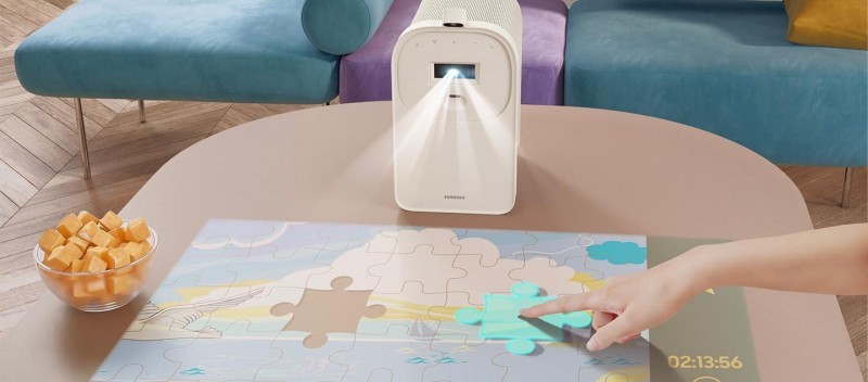 用户不仅关注智能投影仪的功能实用性,同样看重其与生活空间的美学融合。三星Premiere 5以时尚小巧的机身设计,轻松融入书桌、床头柜、厨房餐桌等日常场景。同时,它兼容外置电池,解决了外出时无插座的用电难题,真正实现随手放置、即投即用,成为用户背包里随时待命的私人影院。