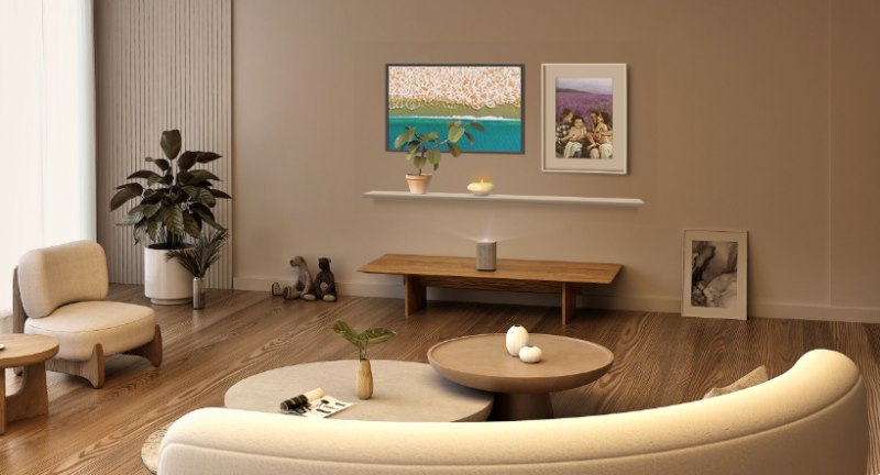 在场景氛围营造上,三星Premiere 5突破了“播放工具”的单一属性,其环境屏模式契合了当下用户对个性化空间打造的追求。用户可随心选择投射自带图库或手机相册内容,还可以配合音乐打造家中极具氛围感的音乐墙,让投影仪变身空间氛围的核心营造者。从节日派对的热闹背景,到深夜阅读时的柔和光影,只需一键切换,就能定制专属空间风格,为生活增添恰到好处的美感与仪式感。