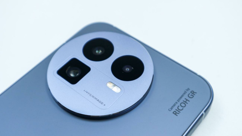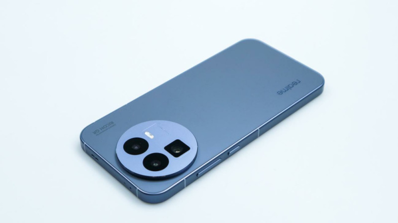 相机DECO,本次采用圆形的三摄设计,不同于以往的玻璃盖板,本次为全金属盖板,加上旁边的“RICOH GR”也知道了本次真我GT8和理光GR的合作,相机上会有很大进步。