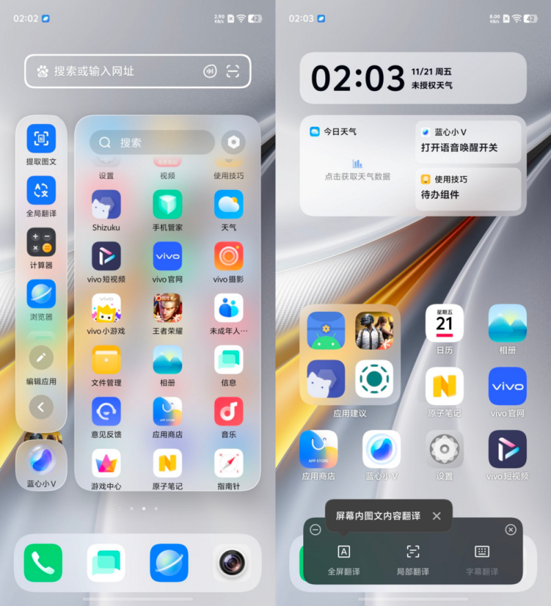 vivo智能车载4.0支持语音免唤醒、导航悬浮卡片,让驾驶更安全。个性化方面,用户可自定义图标样式、字体大小、主题风格,还能一键切换行为壁纸,