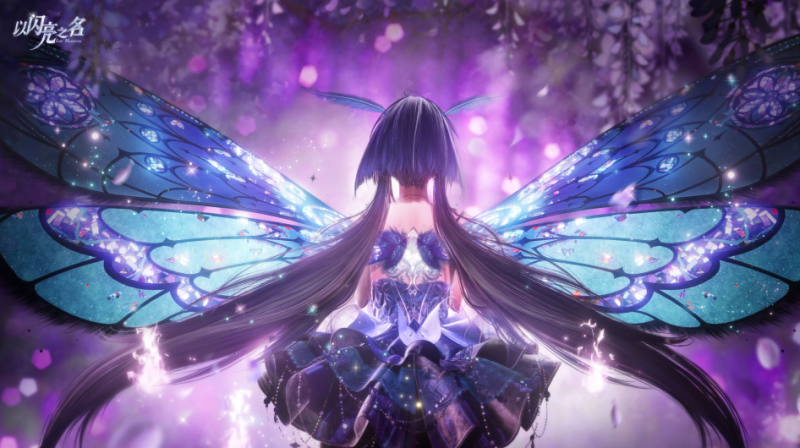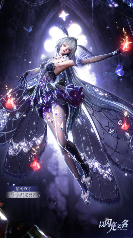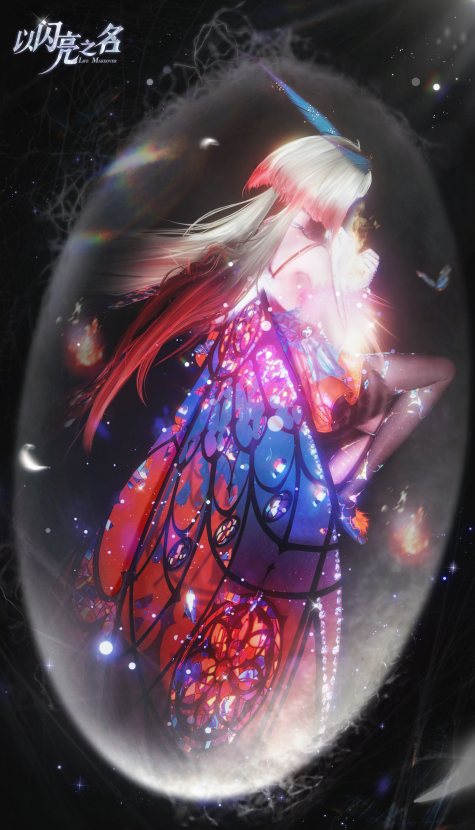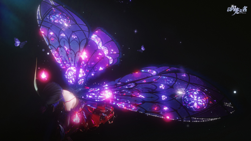 头饰发光粒子与翅膀、裙摆特效搭配到一起,走动时粒子随动作飘落,动线流畅又吸睛。火焰手持物自带静谧气场,恰好呼应飞蛾逐光的宿命感。休闲动作里翅膀随呼吸轻振,带起流光与绒毛碎屑,彩窗碎片折射炫彩光芒,又中和了哥特的沉郁感。更绝的是从背后及整体视角看,飞蛾翅膀绚烂夺目,搭配动作与运镜,不论是静态出图还是动态短视频,这套飞蛾五星套装都很出片!