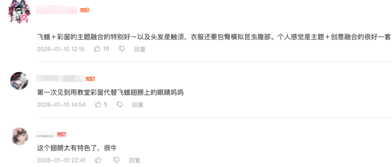 先狠狠夸爆五星星蛾灼穹这套!谁能拒绝一只自带暗黑诡谲滤镜的鬼脸天蛾啊?!以闪的人外拟态从来不会让人失望,之前的人鱼、蜘蛛、不死鸟套装各有惊艳,每一套都把非人元素玩出了新花样。