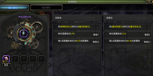 属性转化:可将属性A转化为属性B,如:物理攻击力转为魔法攻击力,致命一击转为防御力。