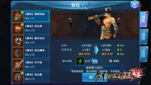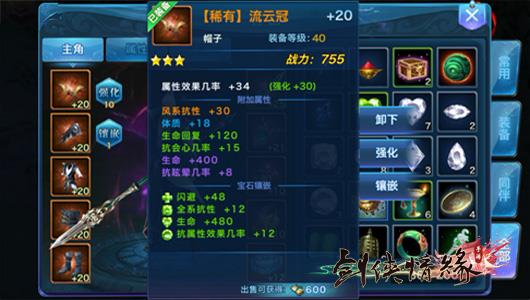 装备界面有各种宝石矿石和我们没有使用的装备,如果这些装备有比身上的装备更好的属性,我们可以用洗练系统,花费一点银两把属性洗到身上的装备上去,让装备更好的体现自己的价值,而没有用的装备我们还可以出售,换成荣誉、传记或者贡献,用来兑换其他物品。